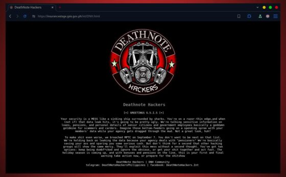 On September 12, 2024, the Government Service Insurance System (GSIS), a state-run social insurance institution for government employees, suffered a cybersecurity incident involving unauthorized access to its system and the defacement of a subdomain of their website. The attack was carried out by a local hacktivist and greyhat hacker group known as DeathNote Hackers, the same group responsible for the Metro Pacific Tollways Corporation (MPTC) data breach incident on September 7, 2024.
