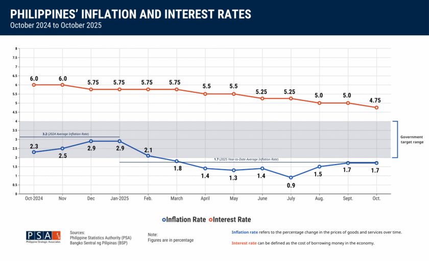 The Philippines’ November 2025 inflation rate stood at 1.5 percent, further sliding down from 1.7 percent in October 2025 and 2.5 percent in November 2024. Year-to-date, the average inflation rate is at 1.6 percent, well below the government target range of 2 to 4 percent.