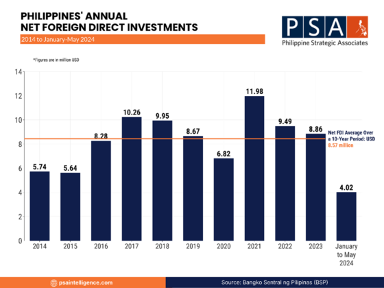 Analysts pointed to outside factors contributing heavily to the stagnant FDI inflows to the Philippines. Security Bank Corp.’s Chief Economist, Robert Dan J. Roces, observed a slowdown in FDI for May 2024. He attributed this deceleration to global economic uncertainties, domestic challenges, and increased regional competition. Meanwhile, Rizal Commercial Banking Corp.’s Chief Economist, Michael L. Ricafort, noted that risk aversion due to geopolitical tensions, specifically the direct attacks between Iran and Israel in April, contributed to the lower FDI. Both economists highlighted that elevated global and local interest rates, along with high prices, significantly impacted FDI.