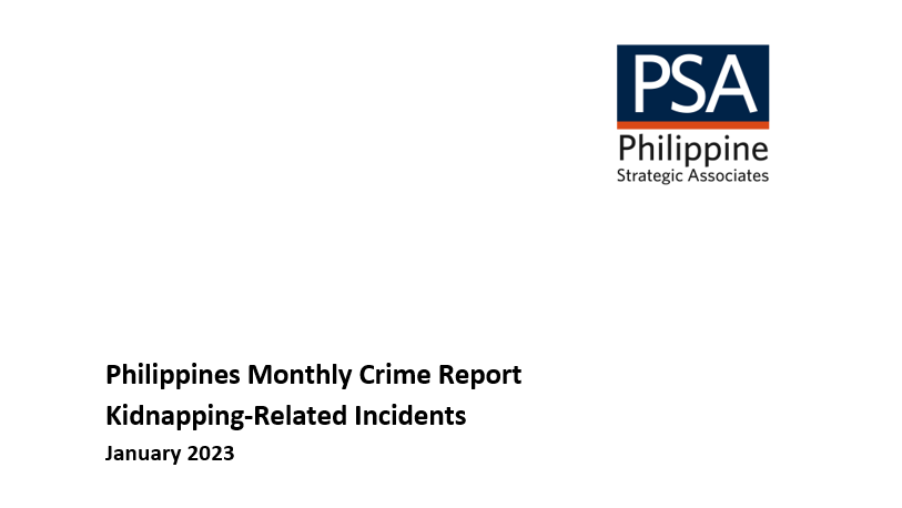 PSA has recorded only one kidnapping incident for the month of January 2023. The abduction incident was personal dispute-related allegedly perpetrated by suspected government security forces. There was no ransom money demanded by the suspects in January.