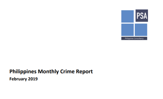 Monthly Crime Report – February 2019 Clients who are fully subscribed to PSA’s Business Intelligence service automatically receive access to this report as a part of their subscription package. Purchase this Report Featured Crime Stories Australian-Chinese National Abducted in Pasay City Irish Woman Raped in Palawan PSA Philippines Consultancy Security Bulletin: Tips to Avoid Qualified Theft by Domestic Staff Forty-five (45) crimes against foreigners Fourteen (14) kidnapping incidents Four (4) incidents in gated communities and condos One (1) incident in hotels Ask an Analyst